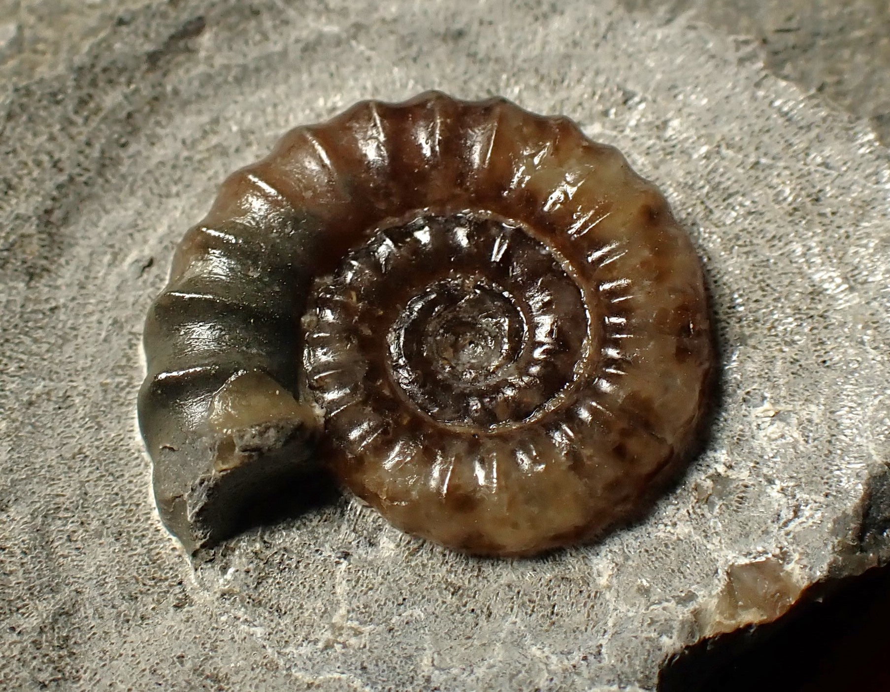 A stunning example of an ammonite fossil of the species Promicroceras planicosta from the world-famous Jurassic Coast beach of Lyme Regis, Dorset UK.