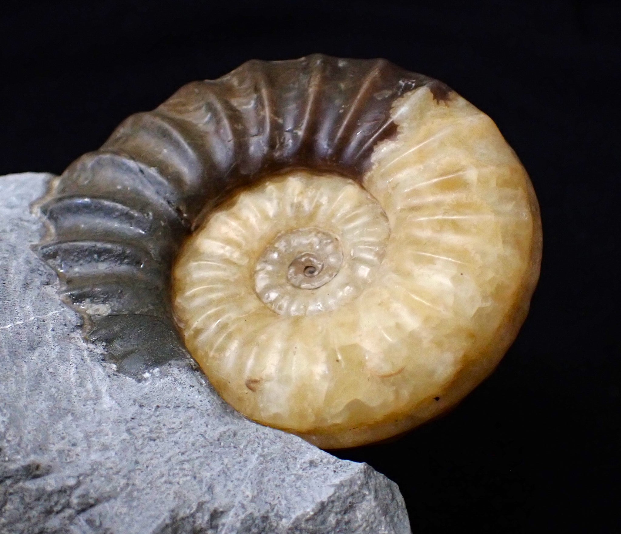 The matrix has had some repair work done as it split when the fossil was found but this did not affect the ammonites.