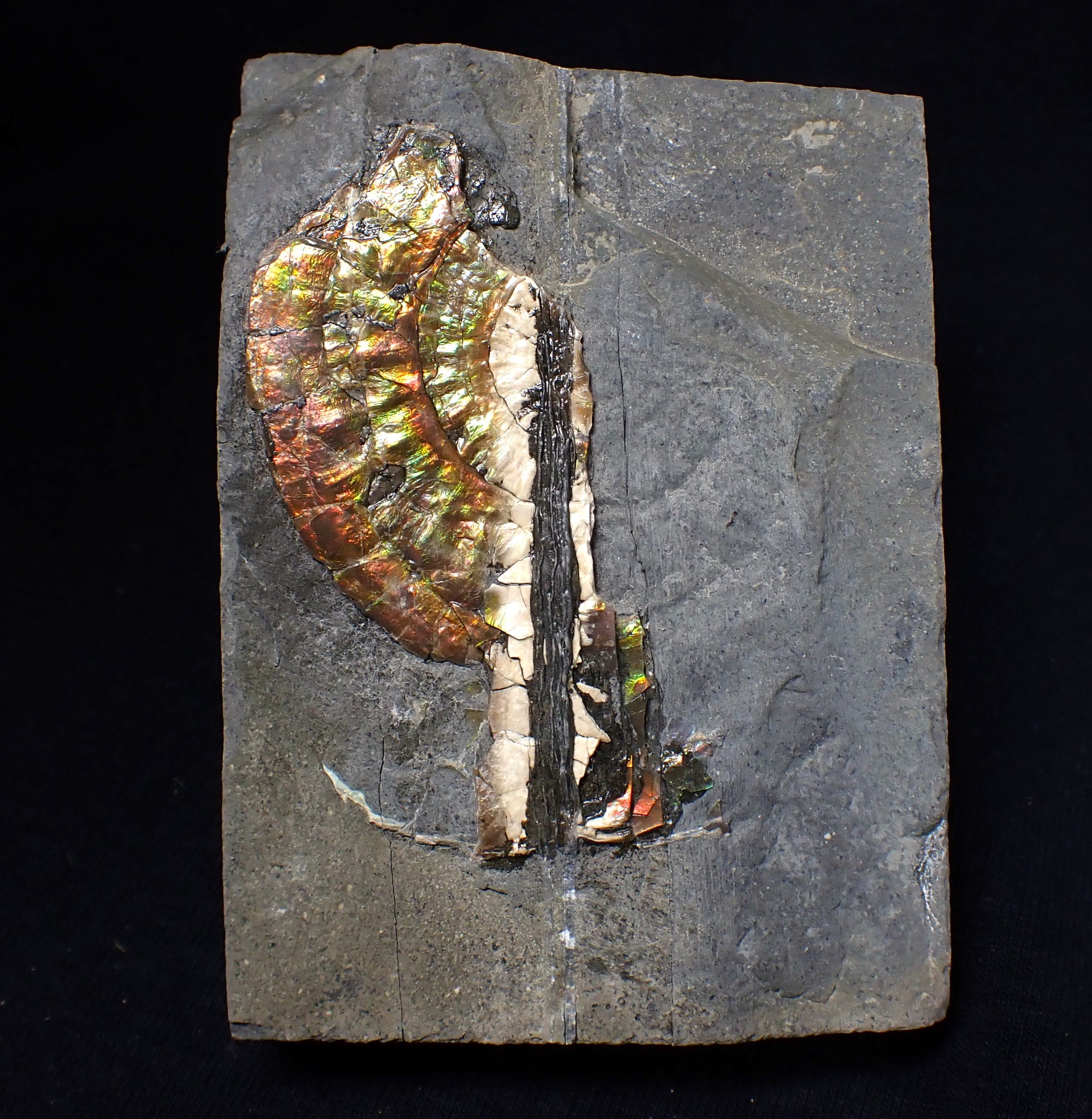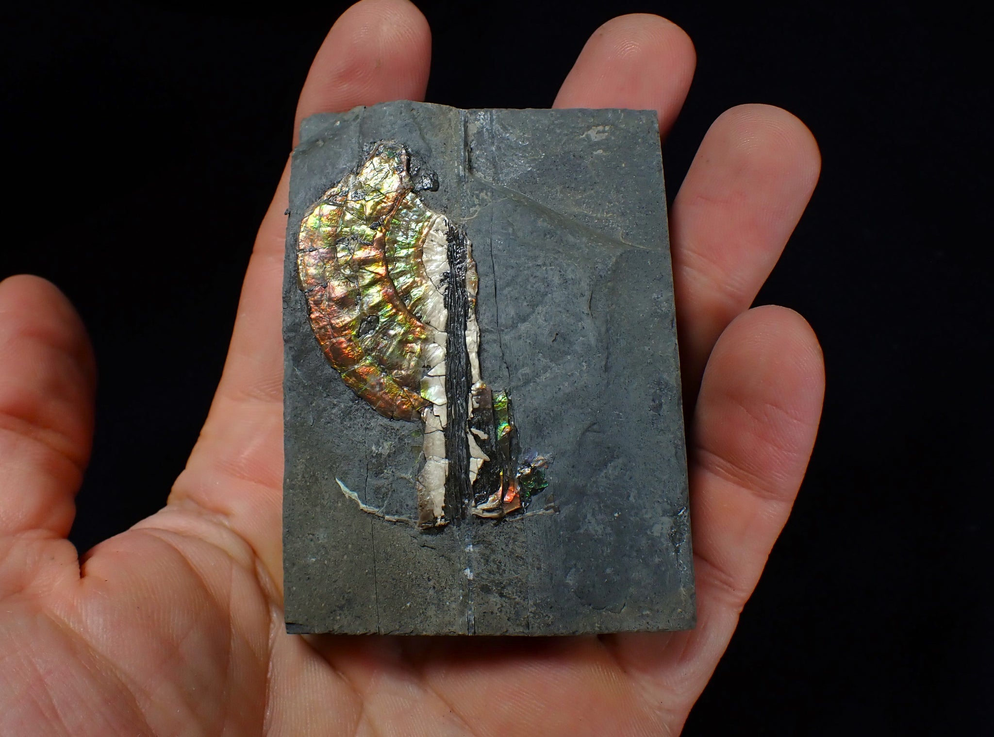 These fossils are highly sought after and very hard to find. They are preserved in the same way as the famous Canadian "Ammolite" ammonites that are turned into valuable gemstones. These fossils make great unusual gifts and each one is totally unique.