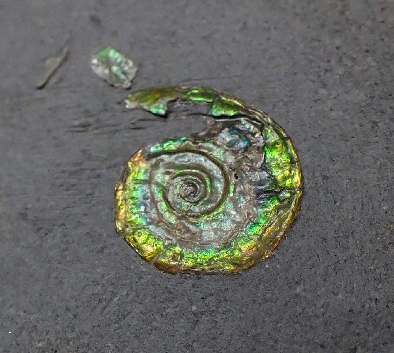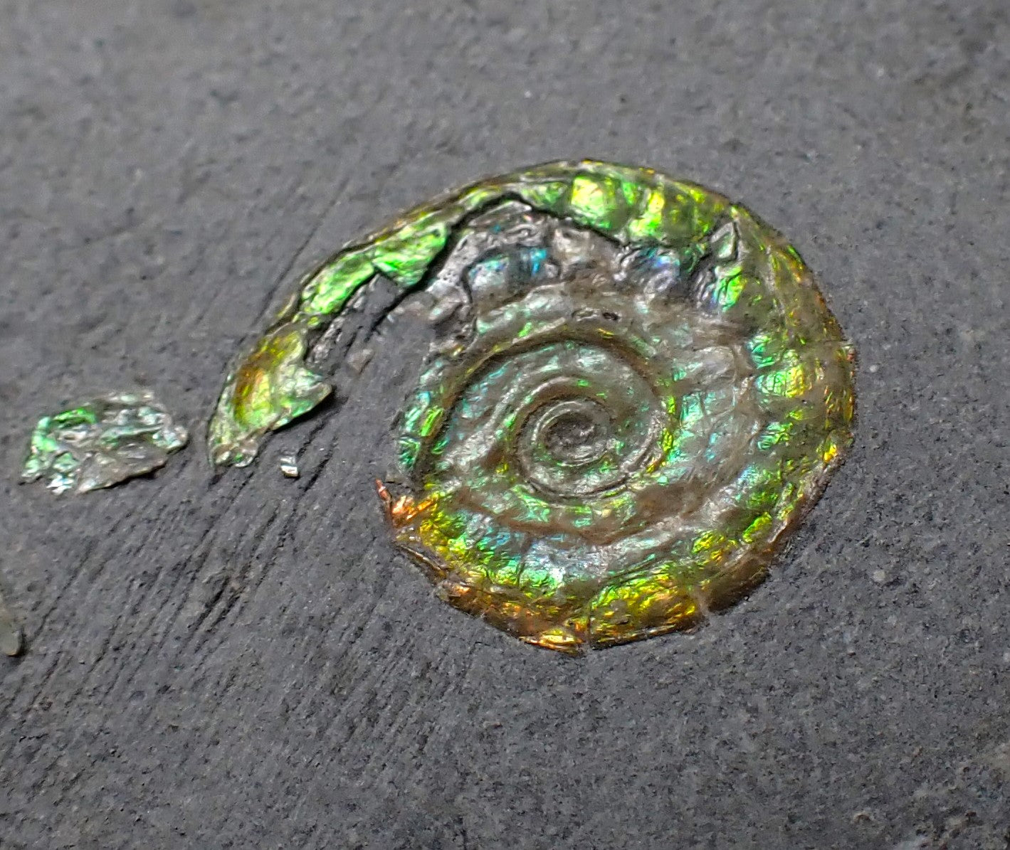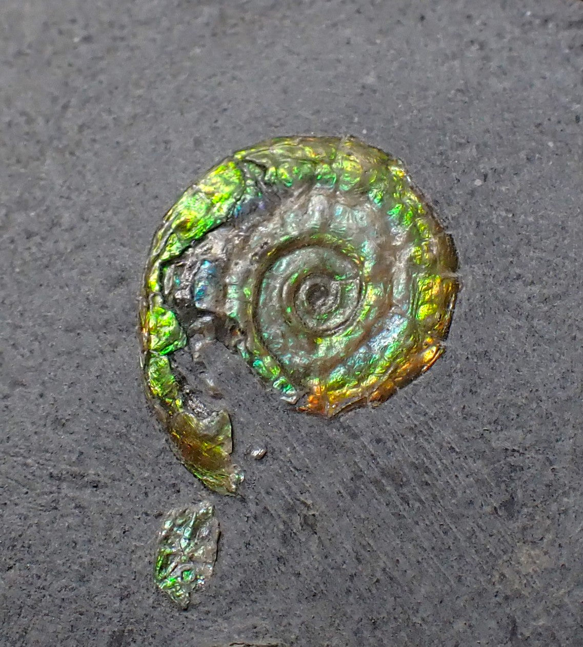 Around 200 million years old (Hettangian, Early Jurassic), this fossil would make a wonderful addition to any collection. These fossils are preserved in the same way as the more famous Canadian "ammolite", which is turned into valuable gemstones due to the stunning iridescence.