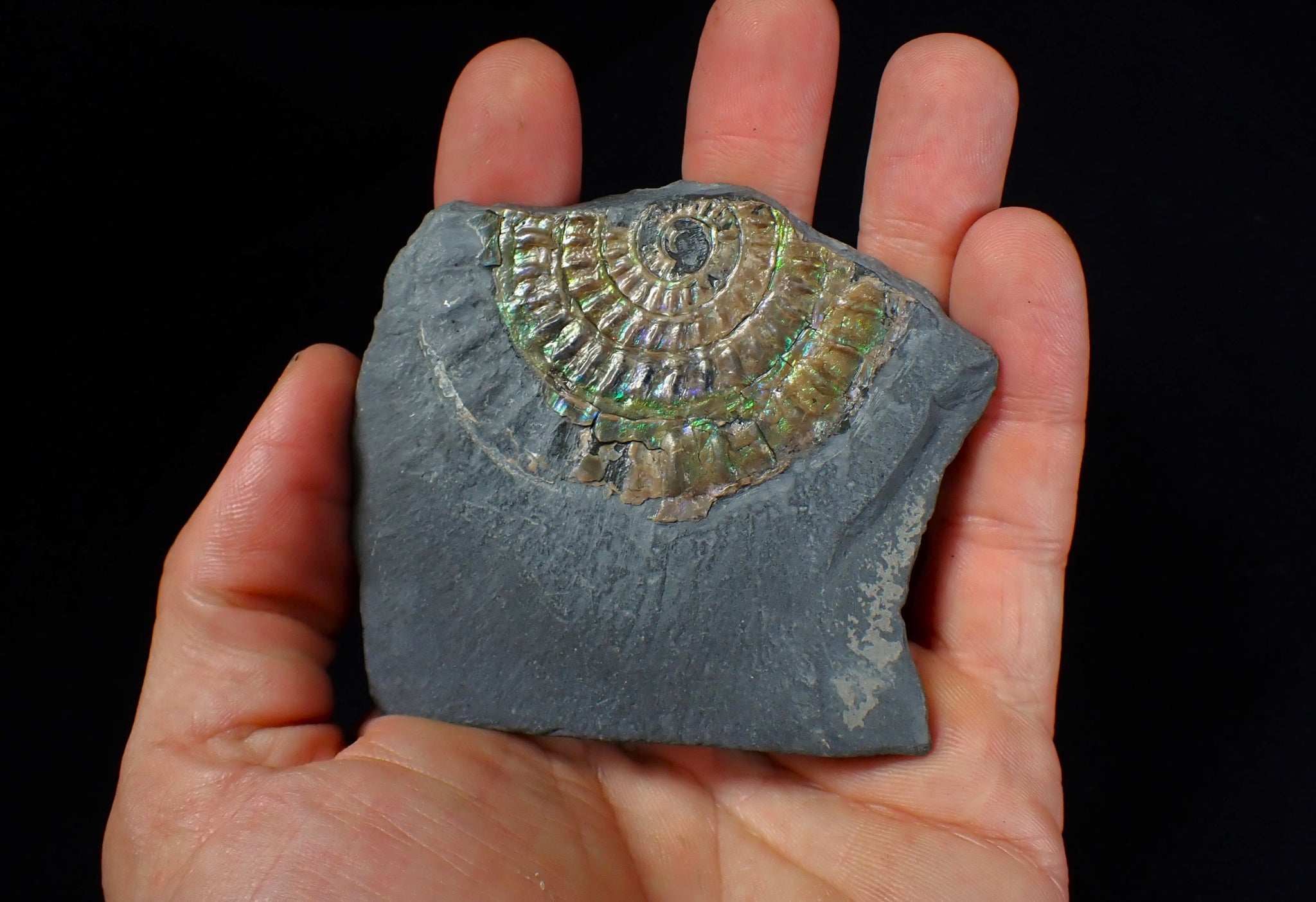 These fossils are highly sought after and very hard to find. They are preserved in the same way as the famous Canadian "Ammolite" ammonites that are turned into valuable gemstones. These fossils make great unusual gifts and each one is totally unique.