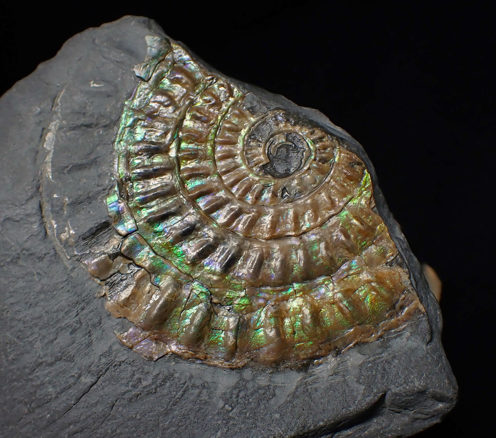 A stunning example of an iridescent ammonite fossil of the species Caloceras johnstoni from North Somerset, UK.