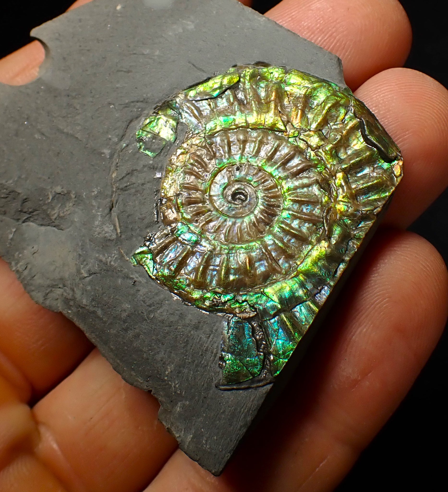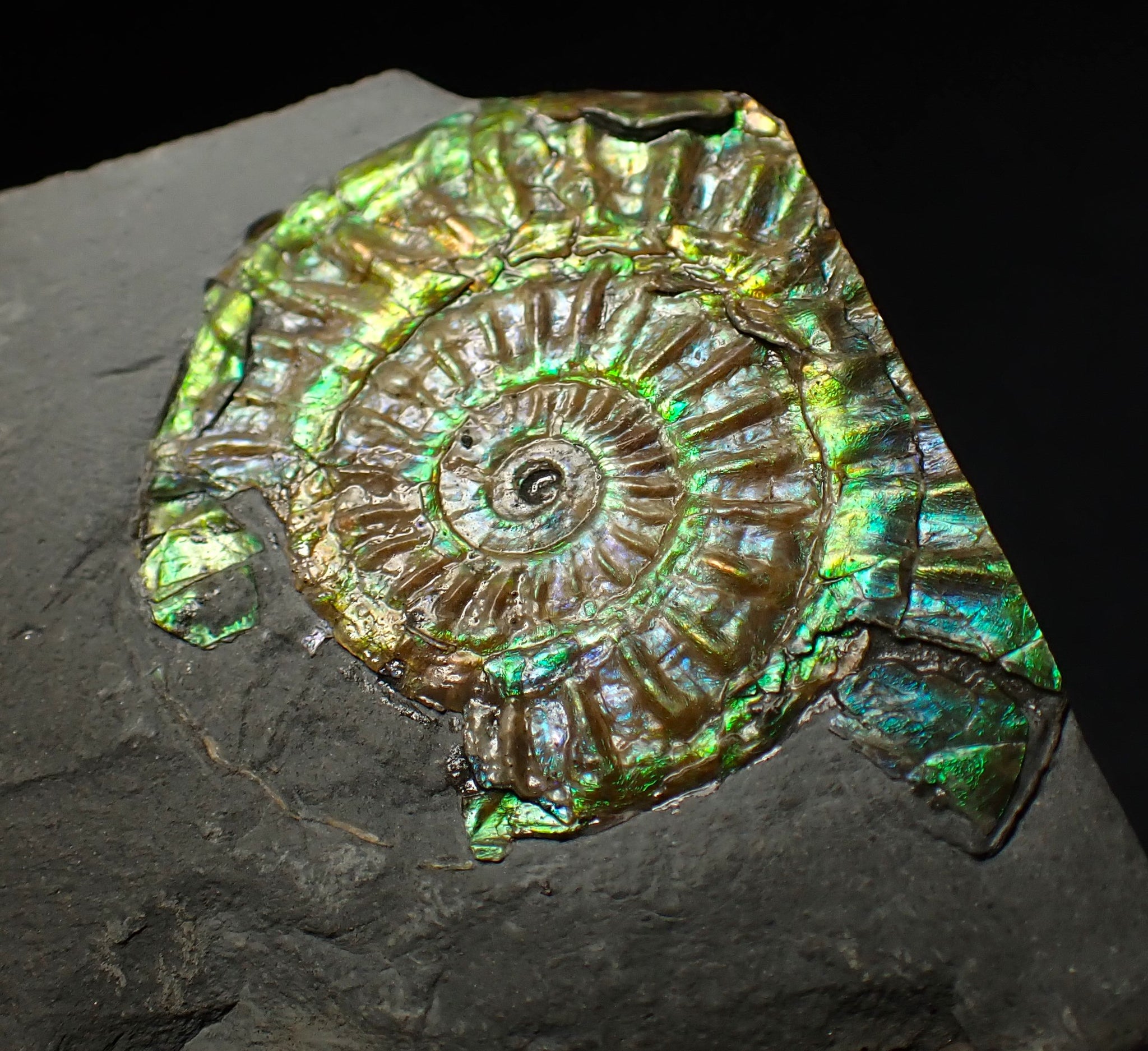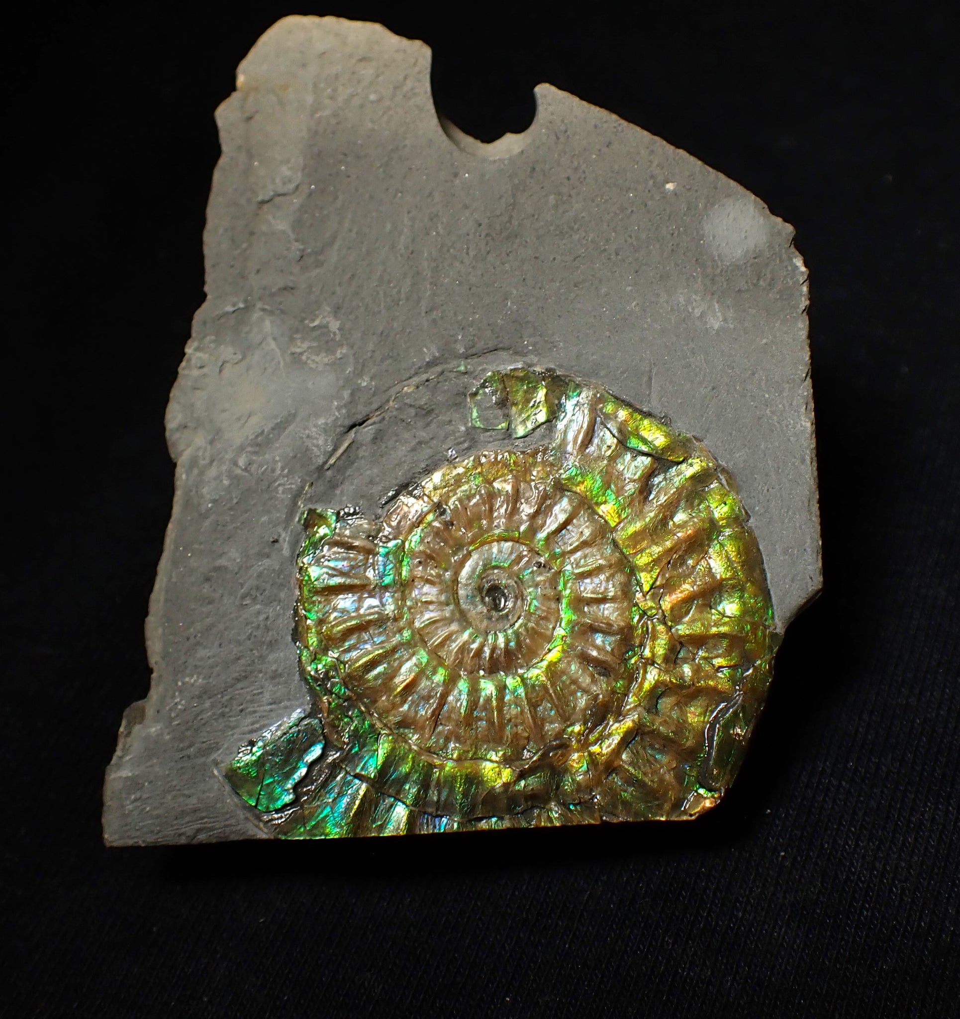 A stunning example of an iridescent ammonite fossil of the species Caloceras johnstoni from North Somerset, UK.