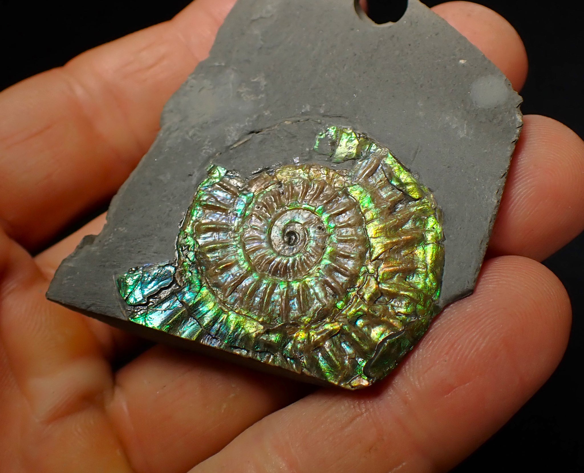 These fossils are highly sought after and very hard to find. They are preserved in the same way as the famous Canadian "Ammolite" ammonites that are turned into valuable gemstones. The combined weight of both pieces is 70 grams. These fossils make great unusual gifts and each one is totally unique.