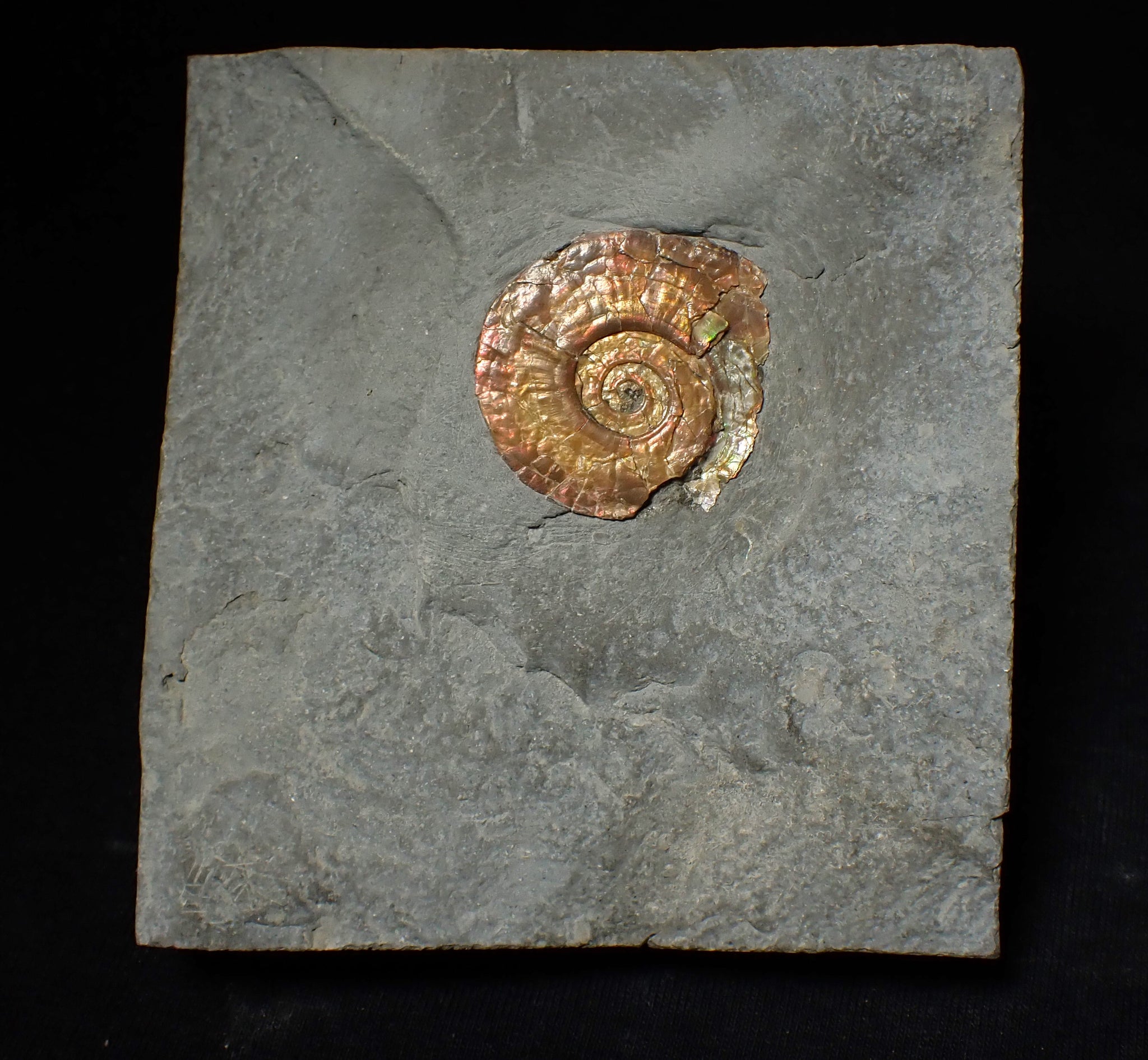 Around 200 million years old (Hettangian, Early Jurassic), this fossil would make a wonderful addition to any collection. These fossils are preserved in the same way as the more famous Canadian "ammolite", which is turned into valuable gemstones due to the stunning iridescence.