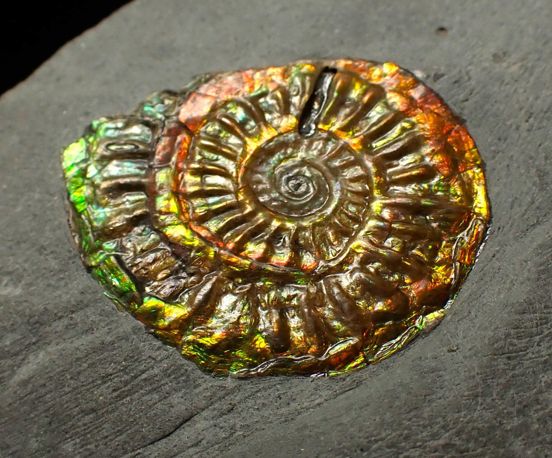 These fossils are highly sought after and very hard to find. They are preserved in the same way as the famous Canadian "Ammolite" ammonites that are turned into valuable gemstones. These fossils make great unusual gifts and each one is totally unique.