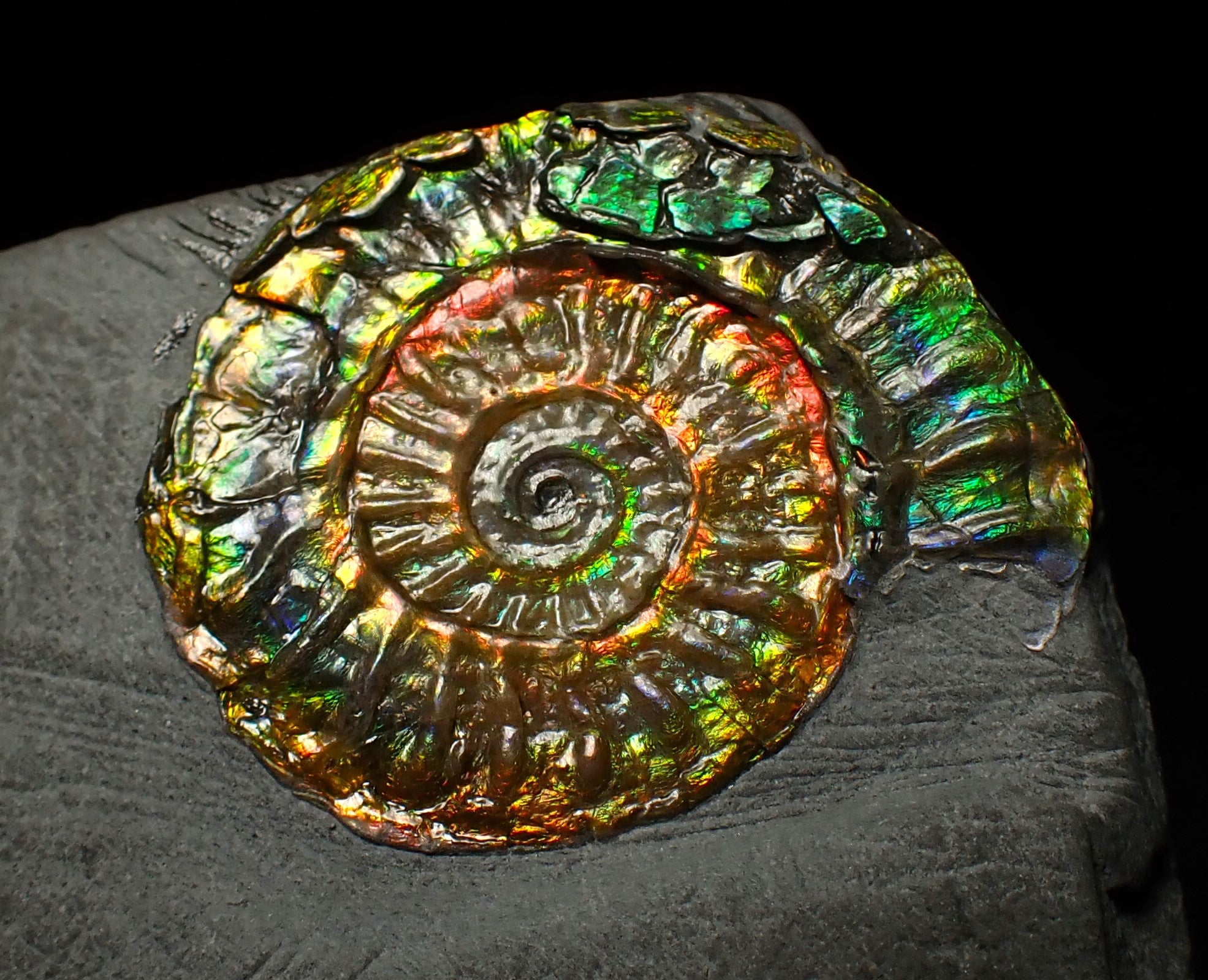 These fossils are highly sought after and very hard to find. They are preserved in the same way as the famous Canadian "Ammolite" ammonites that are turned into valuable gemstones. These fossils make great unusual gifts and each one is totally unique.
