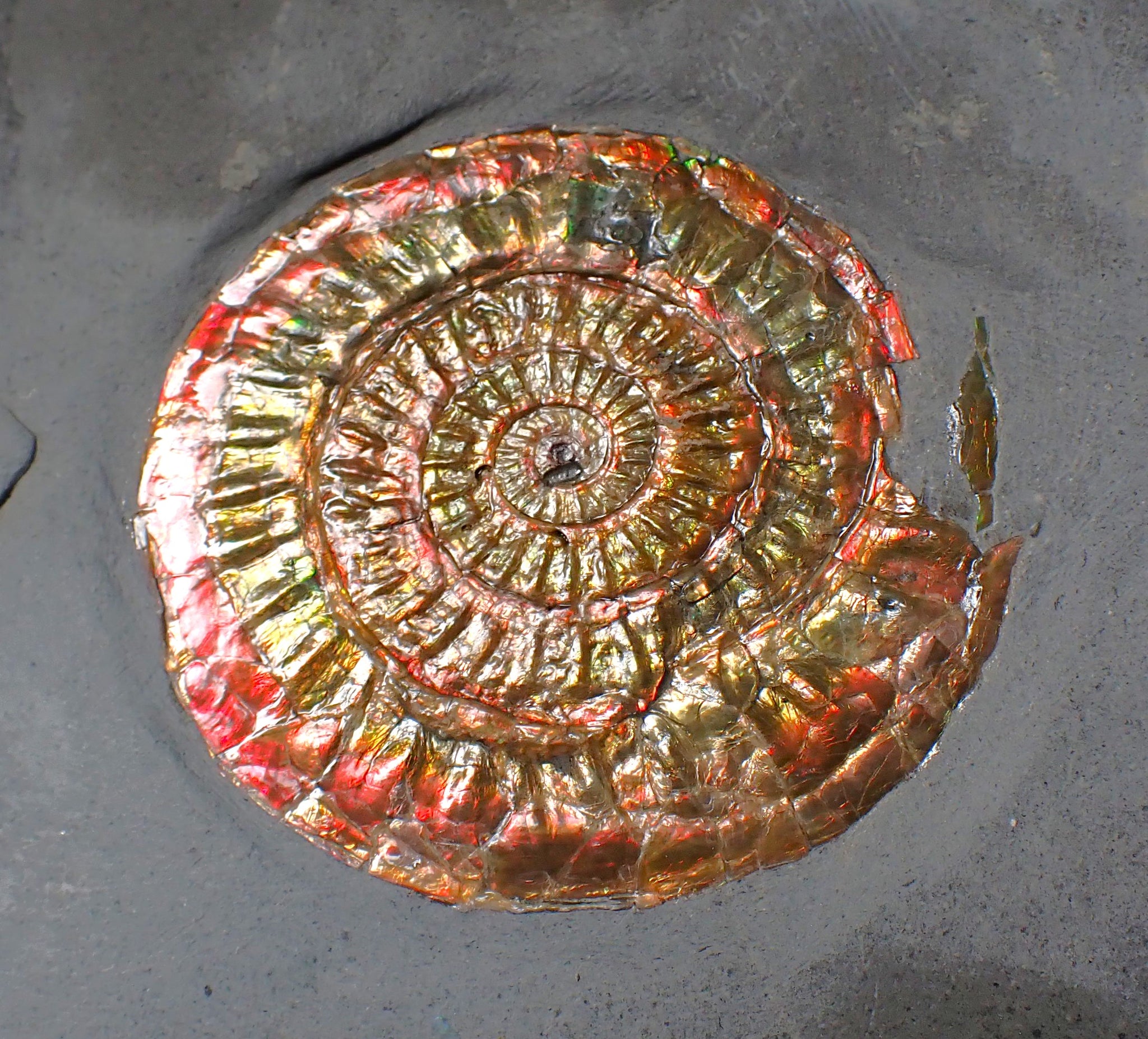 These fossils are highly sought after and very hard to find. They are preserved in the same way as the famous Canadian "Ammolite" ammonites that are turned into valuable gemstones. These fossils make great unusual gifts and each one is totally unique.