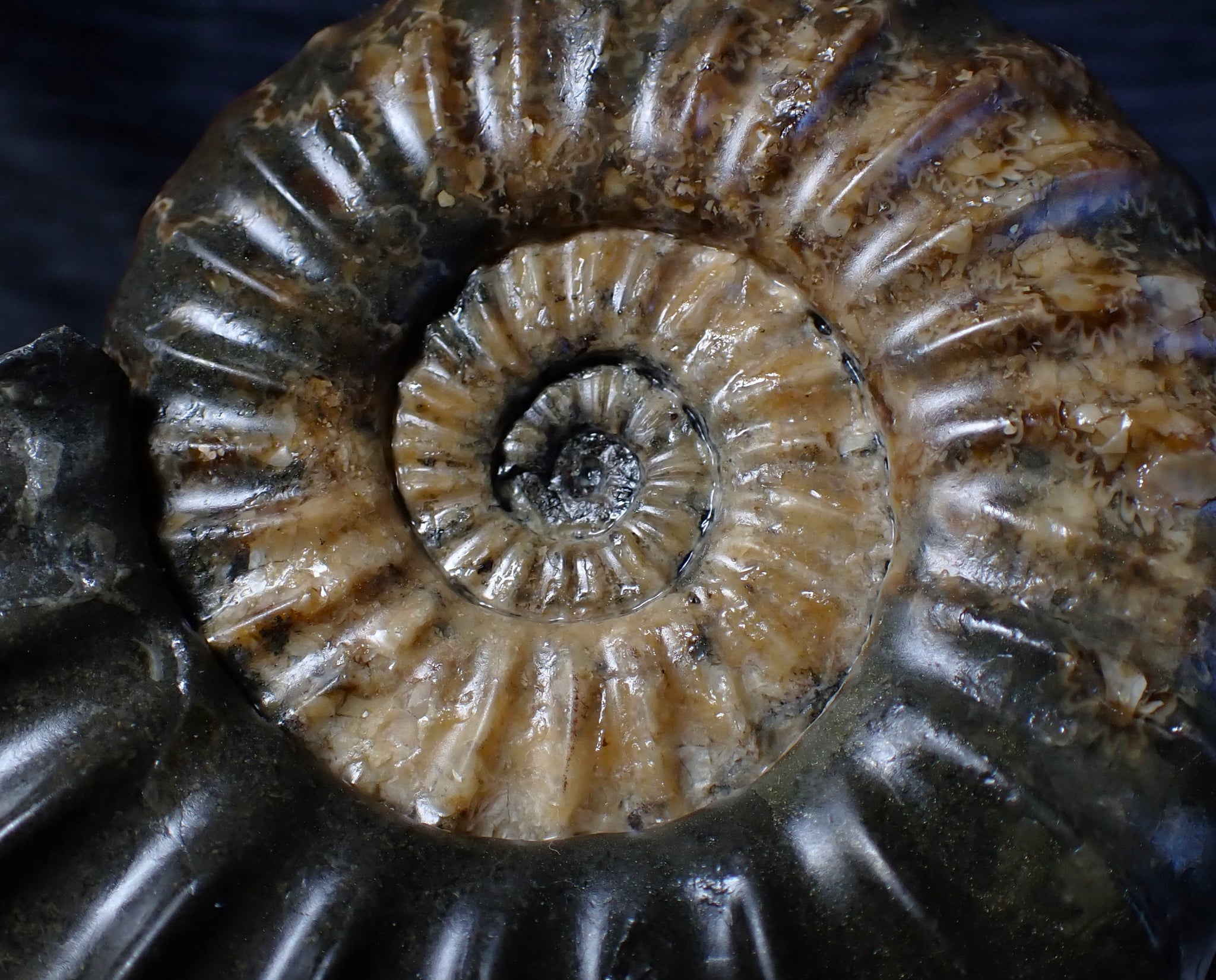 A stunning example of a calcite ammonite fossil of the species Asteroceras obtusum from the world-famous Jurassic Coast beach of Lyme Regis, Dorset UK.