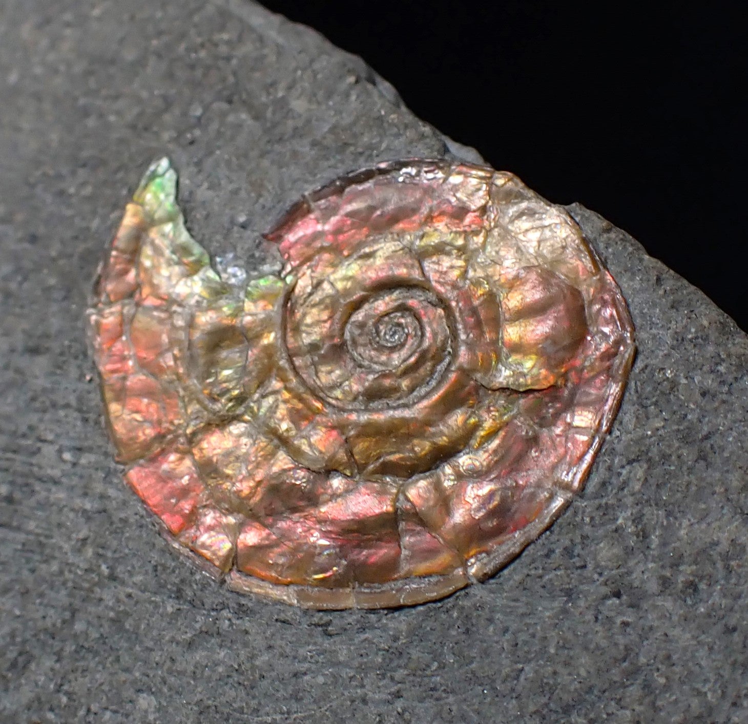 These fossils are highly sought after and very hard to find. They are preserved in the same way as the famous Canadian "Ammolite" ammonites that are turned into valuable gemstones. These fossils make great unusual gifts and each one is totally unique.