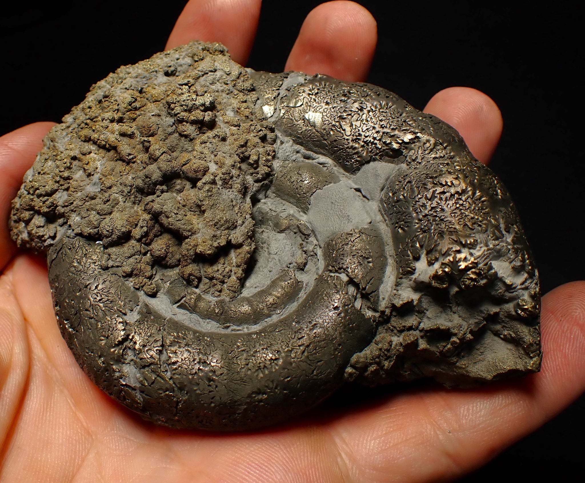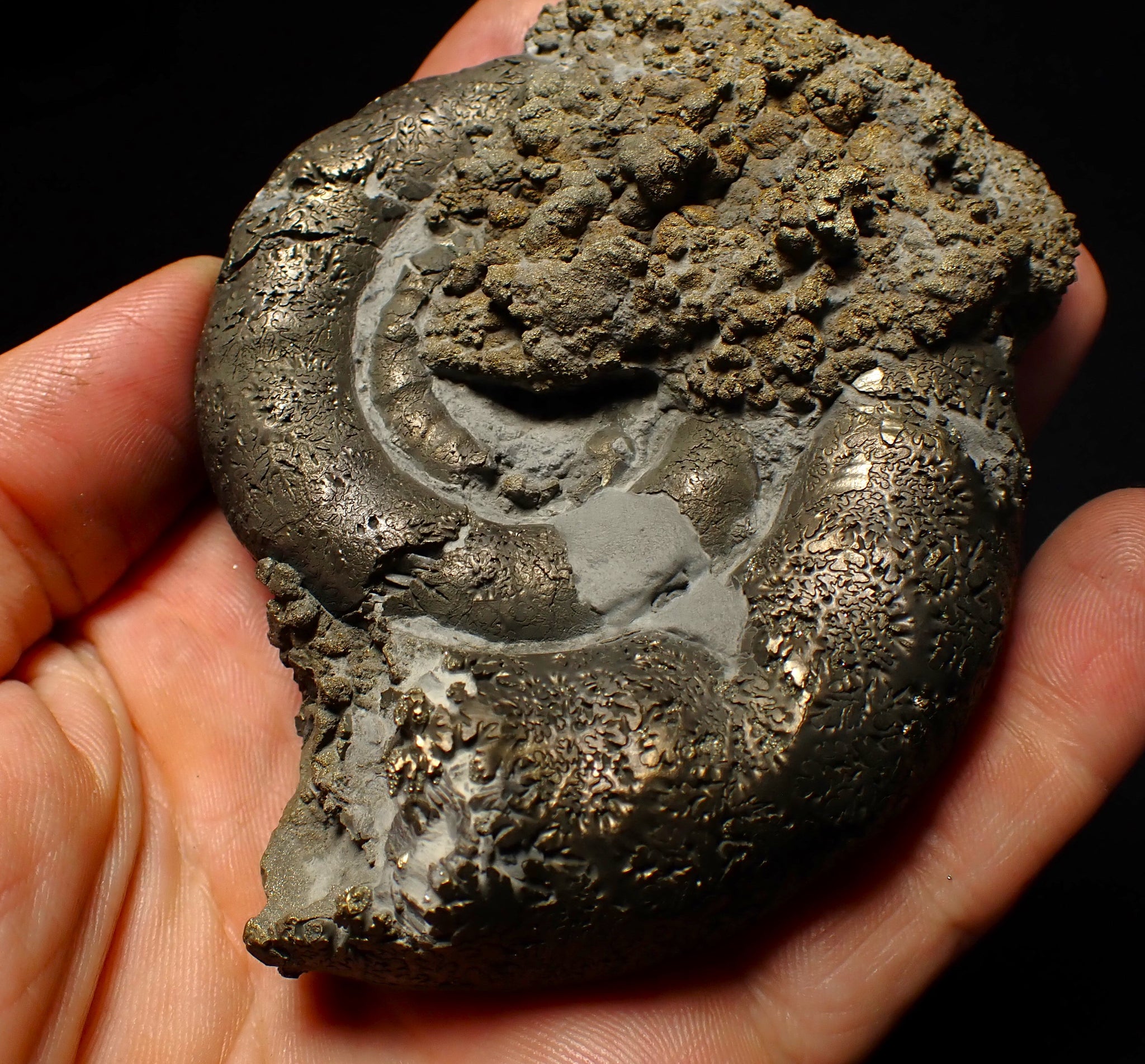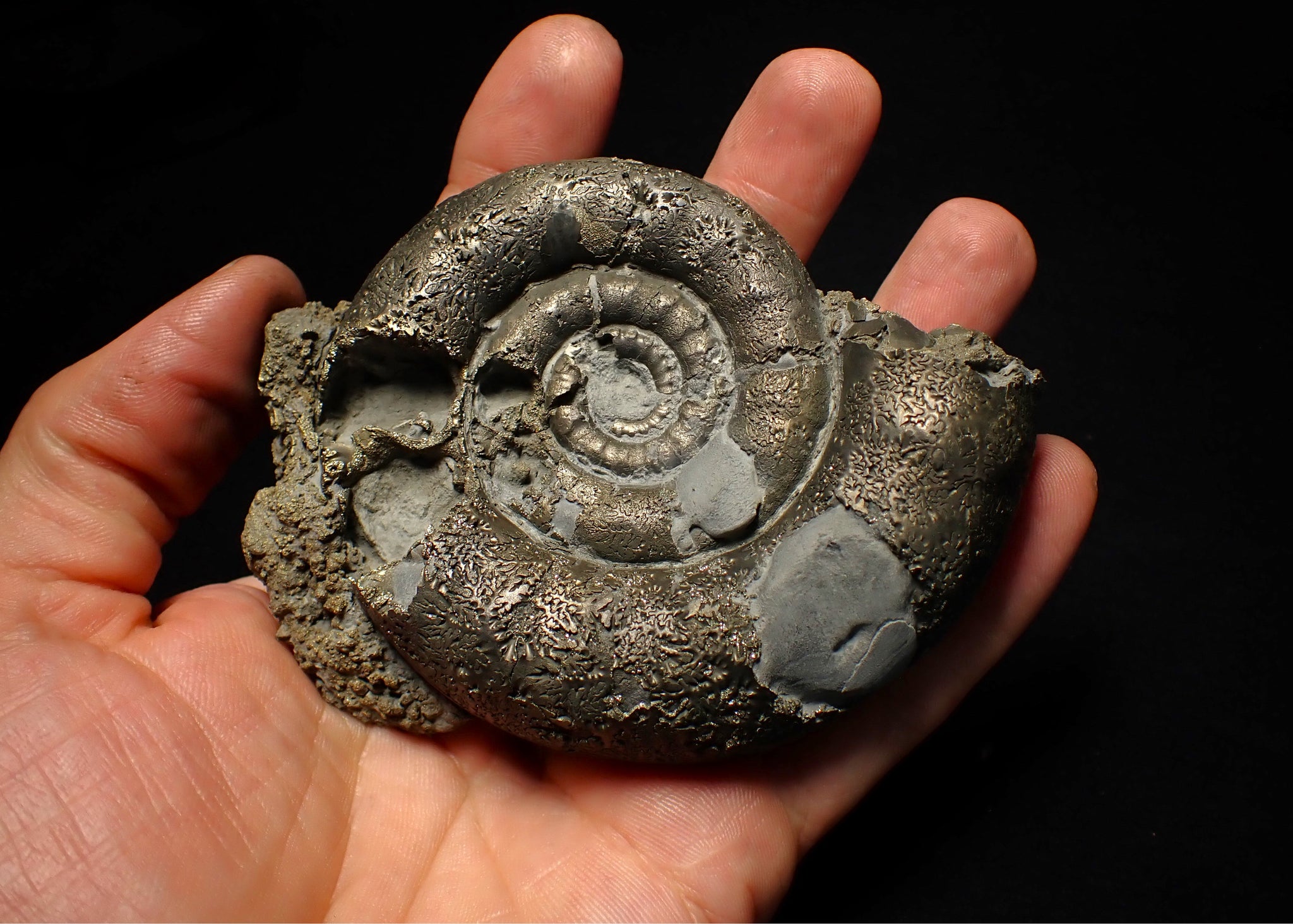 These large Eoderoceras ammonites are often called the "king of pyrites" as they are the largest and most impressive pyrite ammonites found on the Jurassic Coast.