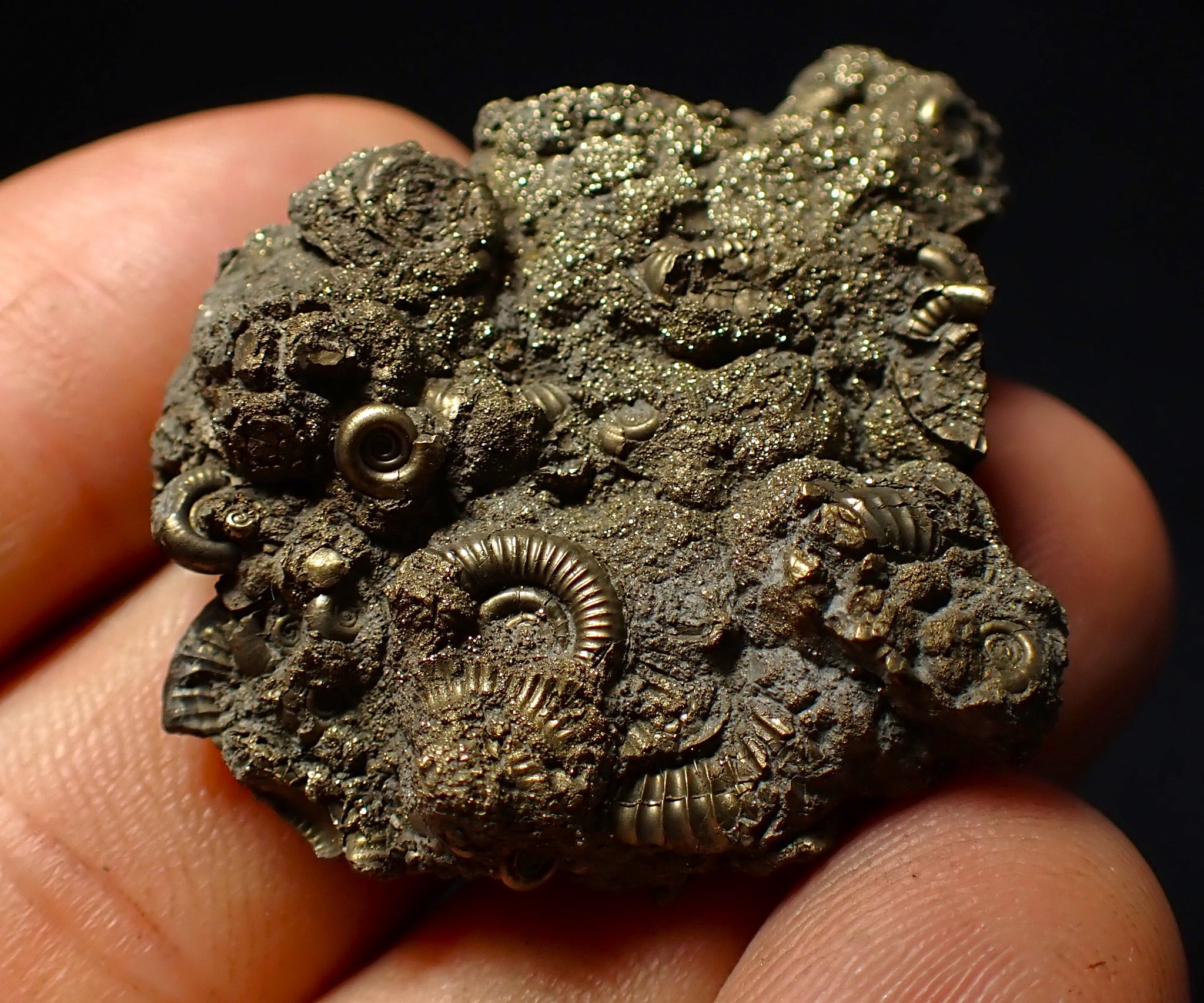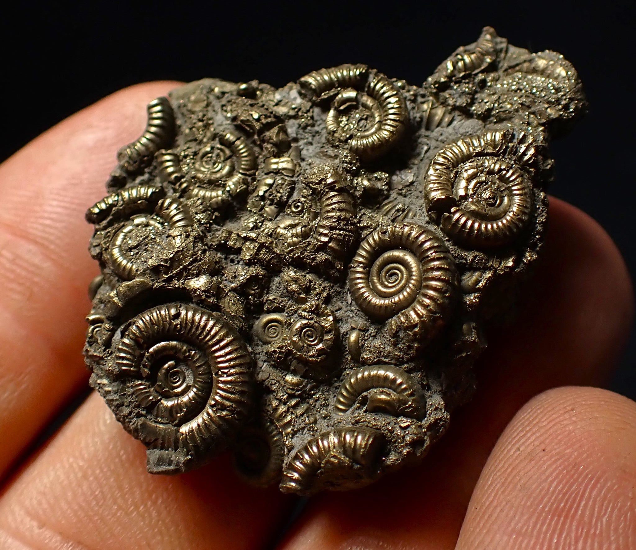 The fossil measures 42 mm (1.7 inches) across with matrix. The pyrite matrix contains lots of small ammonite shells which all accumulated together on the seafloor in the Early Jurassic. This is one of the very best examples of this fossil type we have come across.